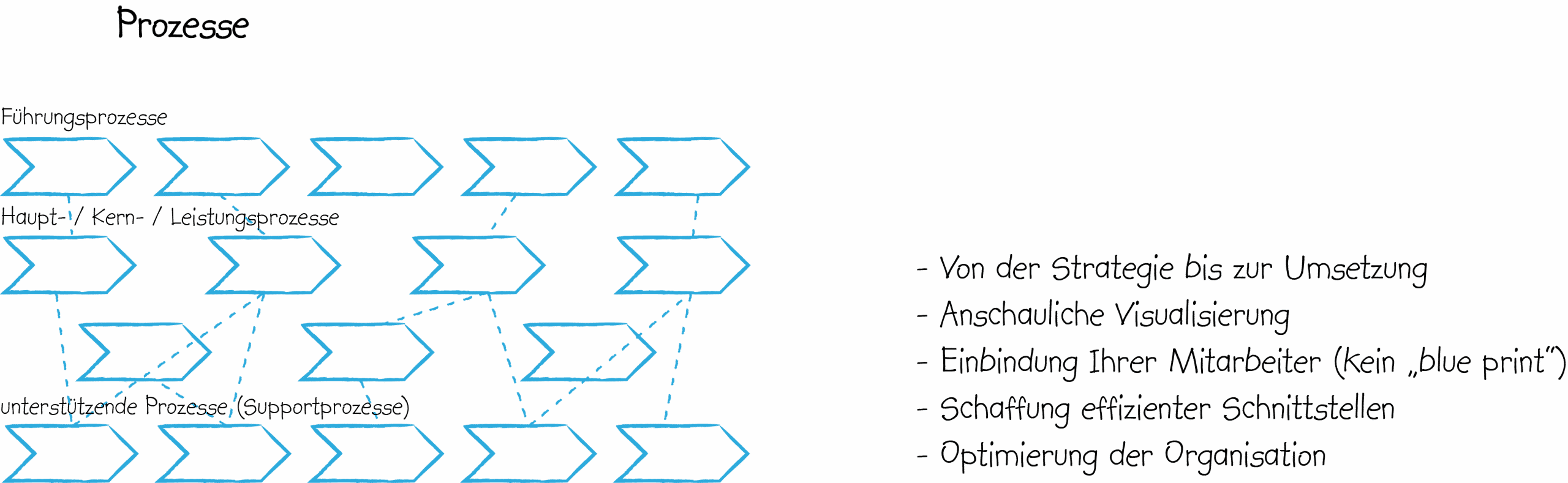Prozessmanagementvon der Anfrage zum ProduktSie optimieren und digitalisieren mit uns auf Basis Ihrer Ziele & Strategien die Prozesse in Ihrem Unternehmen. Prozessanalysen und Prozessoptimierung (KVP)